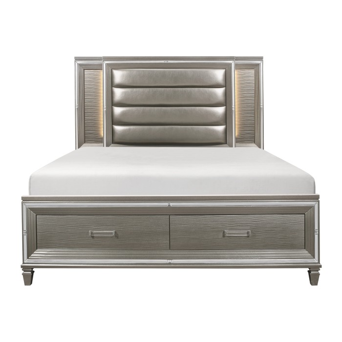 HE-1616-1 Queen Platform Bed with Footboard Storage, LED Lighting