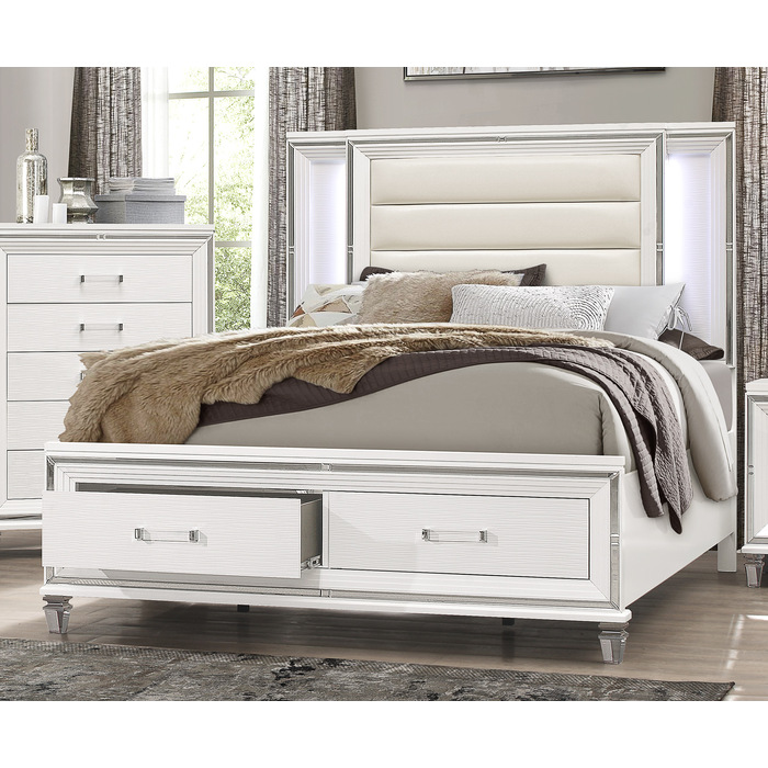 HE-1616W-1 Queen Platform Bed with LED Lighting and Footboard Storage