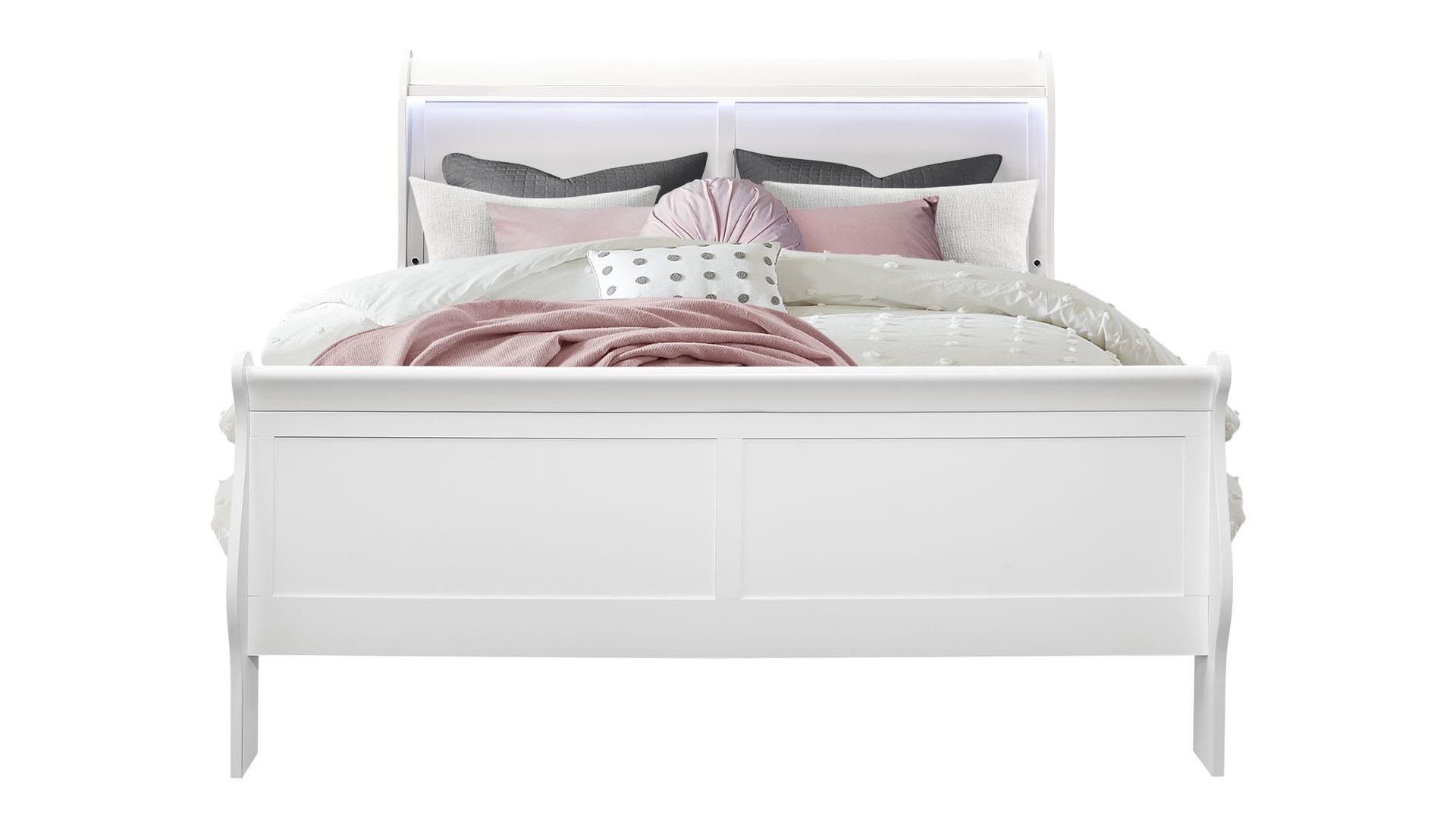 Cassia Queen LED Panel Bed White High Gloss